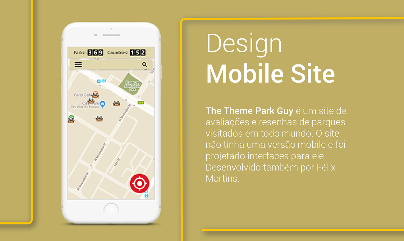 O site The Theme Park Guy faz avaliações e resenhas de parques de diversões ao redor do mundo. Esse site não tem uma versão para dispositivos mobile. Como projeto da disciplina "Tópicos Avançados em Design de Interfaces Gráficas", foi realizado o design dessa versão mobile, projeto feito junto com Félix Martins,. Veja o resultado com esses mockups.